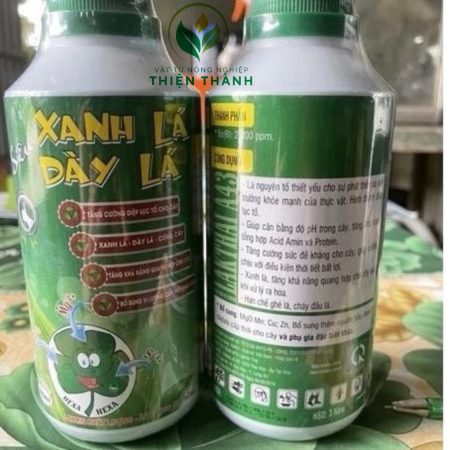 (Hàng Chính hãng LAKMIN) XANH LÁ DÀY LÁ GIÀ giúp bộ lá quang hợp tăng cường diệp lục tố, làm cho lá xanh dày bóng. Thúc nhanh giảm thời gian đi cơi đọt. Chai 500ml, nên kết hợp với Valathore để đạt hiệu quả tối đa.